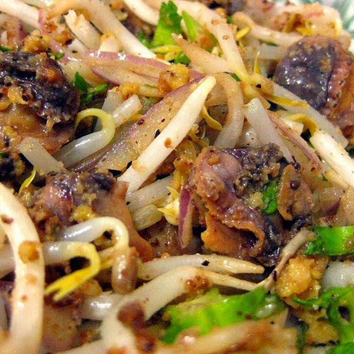 1. Masukkan taugeh, kerang, kerisik, bahan2 hiris dan bahan2 tumbuk dalam mangkuk. gaul hingga sebati.
